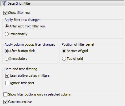 The Case Insensitive option has been added to data grid filter settings (ON by default).