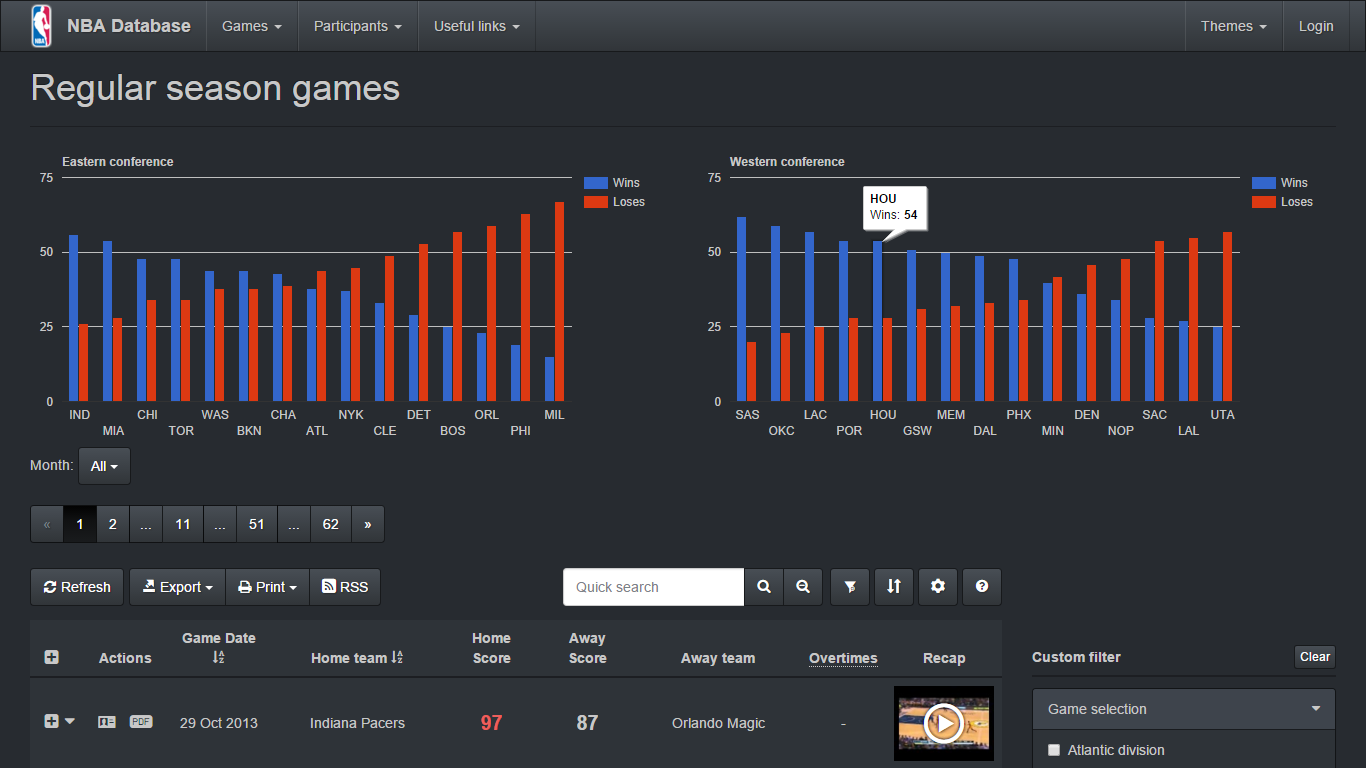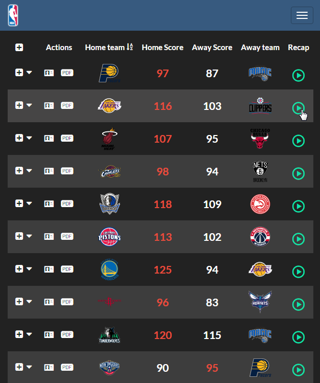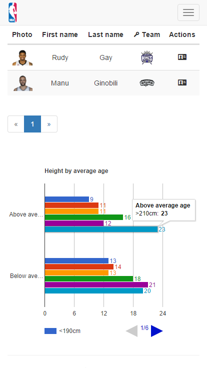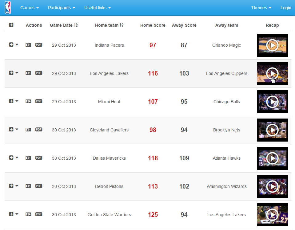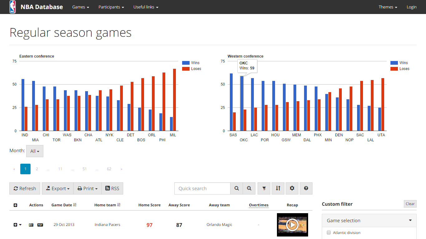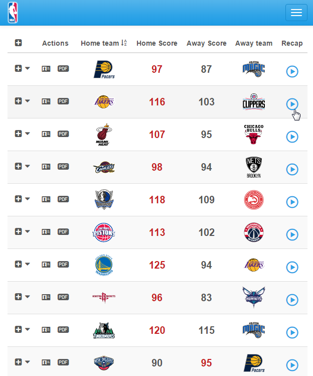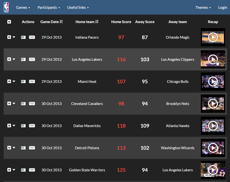 Live examples can be found in the NBA demo app on the Regular season games, Team -> Home Games, and Players pages.