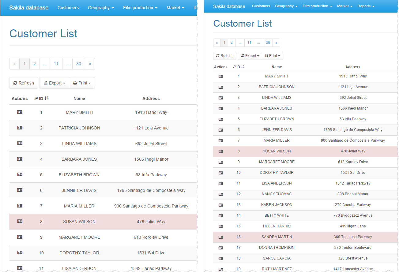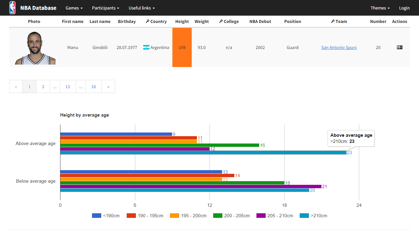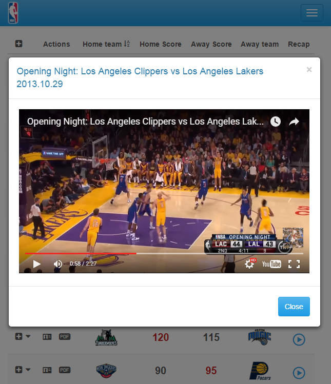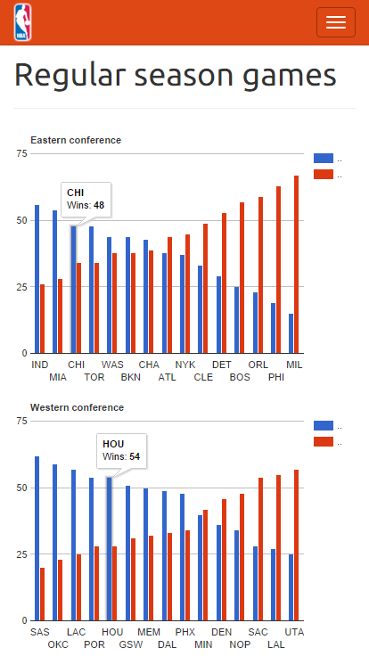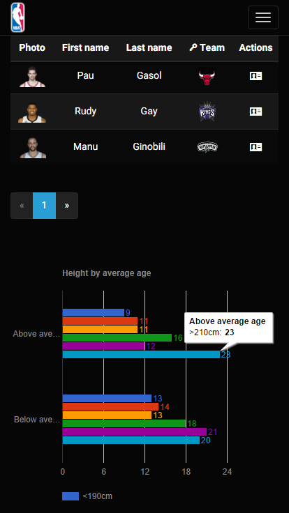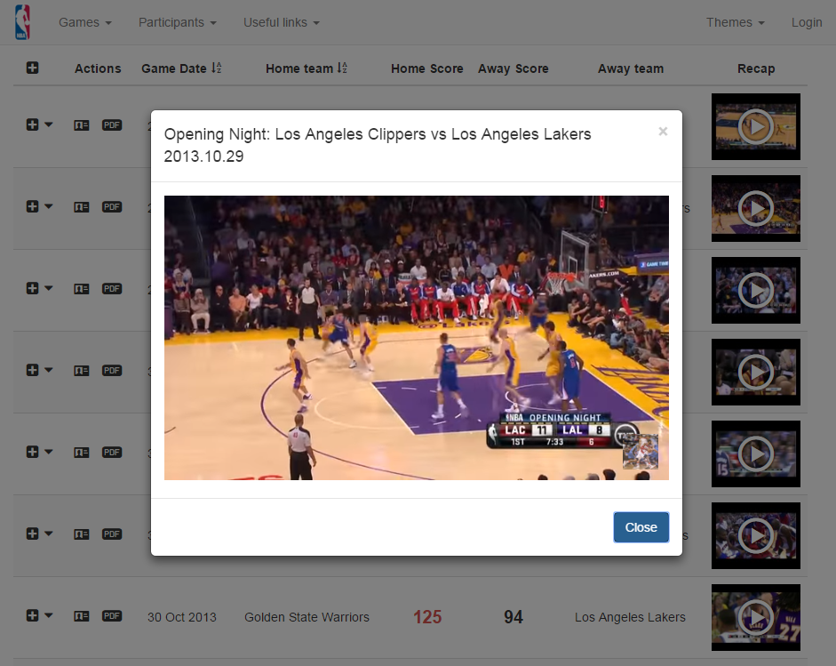 Live examples can be found in the NBA demo app on the Regular season games, Team -> Home Games, and Players pages.
