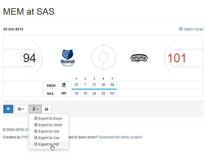 The screenshot below shows a customized PDF from our NBA demo:Listing 3. OnGetCustomTemplate event handler (data grid export)