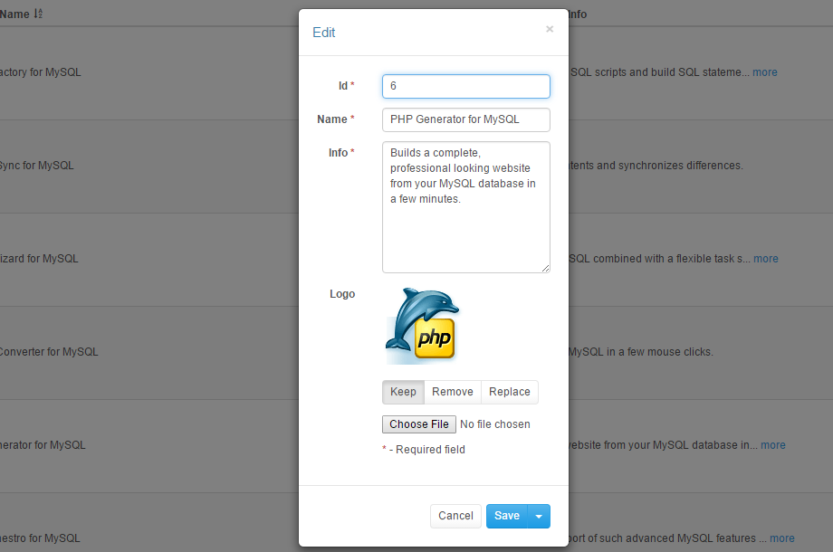 SQL Maestro Group is happy to announce the release of PHP Generator 16.3, a GUI frontend that allows you to build high-quality and feature-rich data-driven web applications for your database in minutes. There are versions for MySQL, MS SQL Server, PostgreSQL, Oracle, SQLite, Firebird, DB2, SQL Anywhere and MaxDB. |