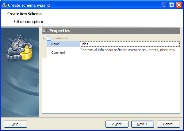 Create Schema Wizard guides you through the process of creating a new database schema.
