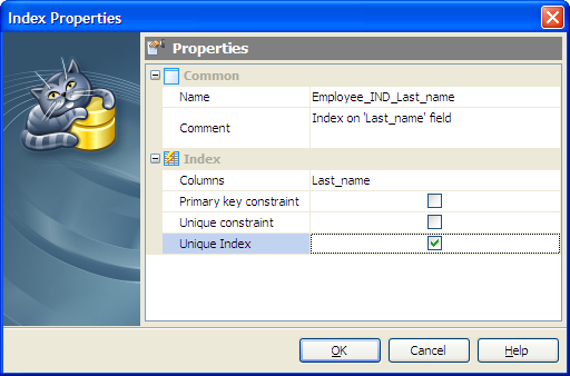 Table indexes are edited within the Index Properties dialog window. In order to open the dialog you should either