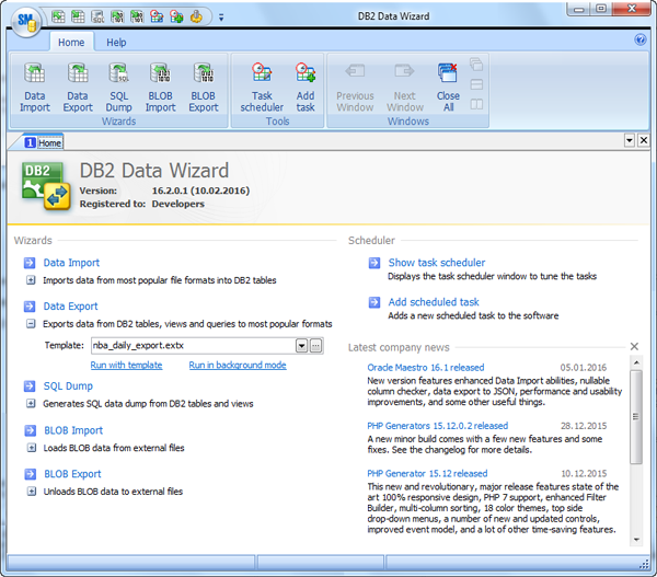 The Home page contains a set of links to run all the wizards included into the software. Each wizard may be run in 3 ways: