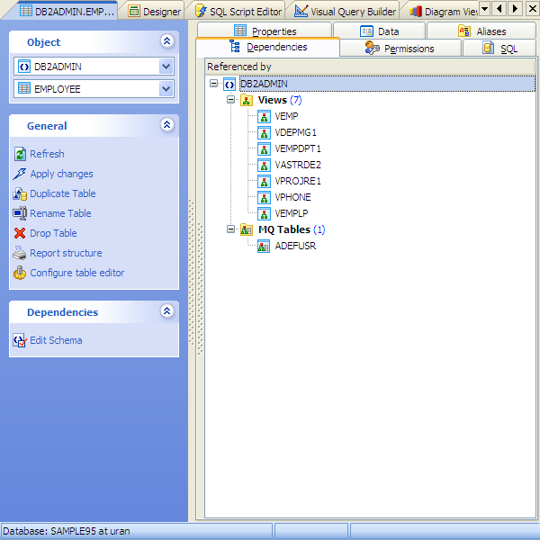 When you create complex database structures involving many tables with foreign key constraints, views, triggers, Functions, etc. you will implicitly create a net of dependencies between the objects. For instance, a table with a foreign key constraint depends on the table it references. We tried to create a software to make your work easier, i.e. to give you the tools for efficient database objects management. The Dependencies tab allows you to control the correlation of objects efficiently.