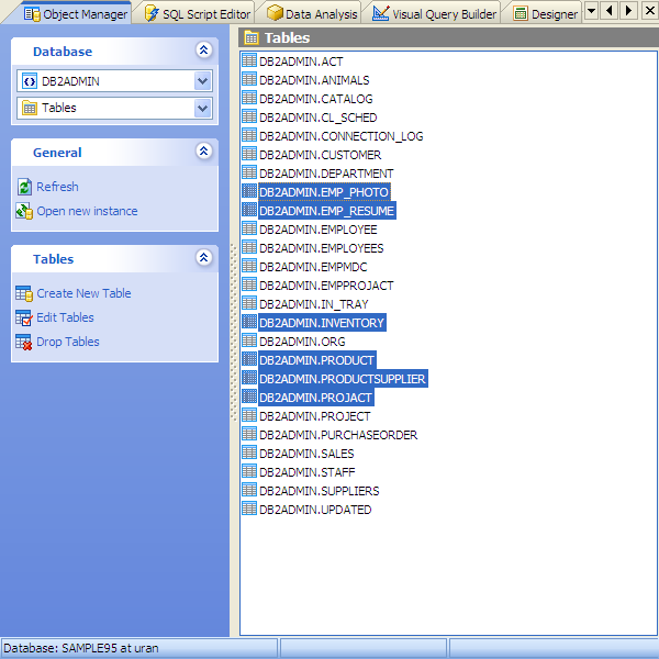 You can select several database objects in the Object Manager of DB2 Maestro to perform the same operation upon all of them at a time.