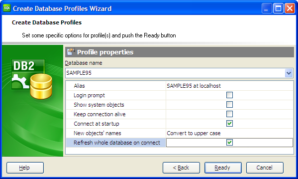 Click the Ready button when done to start working with the selected databases in DB2 Maestro.
