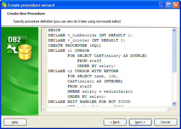Create Procedure Wizard guides you through the process of creating a new procedure. See How To Create Procedure for instructions on running this wizard.