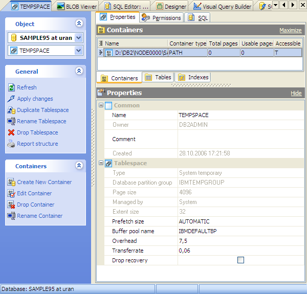 Tablespace Editor is the basic DB2 Maestro tool for working with existing tablespaces. It can be open automatically after the tablespace is created and is available on editing the tablespace (see How to edit tablespace for details).