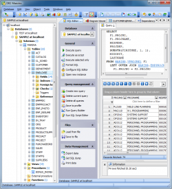 The list above is not complete. DB2 Maestro allows you, for example, to create a new table in a few mouse clicks, to get SQL dump of your metadata and data (even without knowing the syntax), to execute any SQL script, to copy a table from one database to another by drag-n-drop operations or by pressing Ctrl+C/Ctrl+V hot key combinations and a lot of other features. |