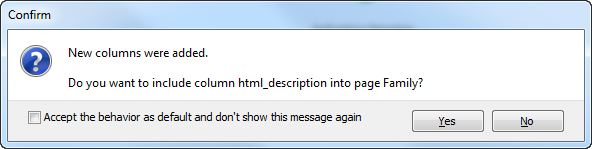 Refreshes the database schema. If a new column detected in a page data source, DB2 PHP Generator asks you whether you want to include that column into the page. This behavior can be specified in the Application Options dialog.