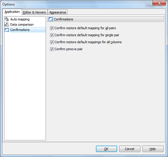 This tab allows you to disable/enable application confirmations. Most of these options can be also set directly from the corresponding confirmation dialogs.