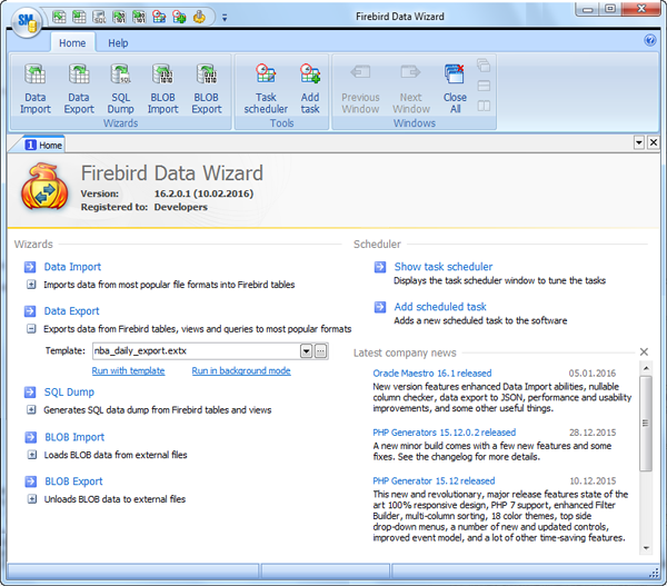 Phillip Magger: "A word of congratulations. I think that your Firebird Data Wizard is some of the best stuff I have ever used. I was in search of an easy-used tool, and I found it. It is a good solution".