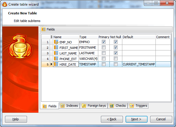 The basic principles of Create Object Wizards in Firebird Maestro are explained in a separate topic. Below you will find a description of wizard steps that are unique for the current object.