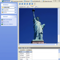 BLOB Viewer allows you to view the content of the BLOB fields in various representations such as hexadecimal dump, plain text, graphical image or HTML page.