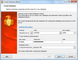 To start working with Firebird databases in Firebird Maestro you should first create a database profile or several database profiles using Create Database Profiles Wizard.