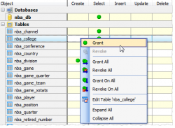 Firebird Maestro allows managing access privileges (Grants) for Firebird users and roles in the simplest way. Suppose the user John may have Insert privileges on the table Employee. Just open the User (John) Editor and set there the necessary grant. At the same time you can open the Table (Employee) Editor to specify the user permission. Consequently, when specific privileges for selecting, inserting, updating, deleting, referencing an object (e.g. table, procedure, view, etc.) are given, the object acquires the corresponding Permissions indicating which user or object was given a Grant. |