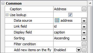 1. Open Page Editor for a table containing the address_id column, select this column and specify its lookup properties. If a foreign key constraint is defined and the Setup lookup by foreign key option is enabled, these properties are set automatically.