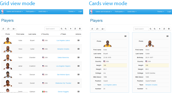 Select whether page data are displayed in a grid or as info cards. The end-user can easily switch from the grid mode to the card one and vice versa using the Page Settings dialog (if the Runtime Customization option is enabled).
