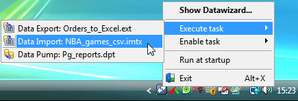 MaxDB Data Wizard Agent allows you to execute application scheduled tasks in background mode. To execute such a task, the Agent application must be run, in other words, it is necessary to have a user to be logged on (system scheduled tasks do not have such a limitation). See Task Scheduler to learn more on MaxDB Data Wizard tasks.