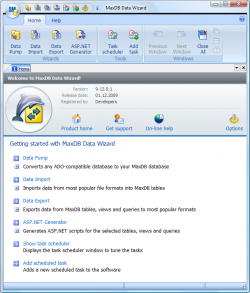 - Data Import Wizard: a helpful tool for importing data from MS Excel, MS Access, XML, DBF, TXT, CSV files and any database accessible via ODBC driver or OLE DB provider to MaxDB tables;