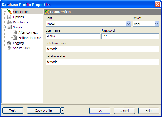 Use the Edit Database Profile dialog to edit the profile properties set on its creation. To open the dialog, select the database in the explorer tree, then select the Database | Edit Database Profile... main menu item or press the Shift+Ctrl+E hot key combination. You can also use the Edit Database Profile button of the main toolbar.