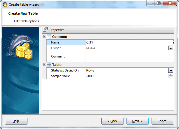 Table options (All fields at this wizard step are optional, i.e. it is not obligatory for you to fill them.)