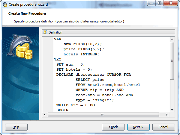 Create Procedure Wizard guides you through the process of creating a new procedure. See How To Create Procedure for instructions on running this wizard.