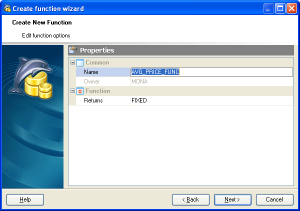 Specify the properties for the new Function according to your needs. The detailed description is given below.
