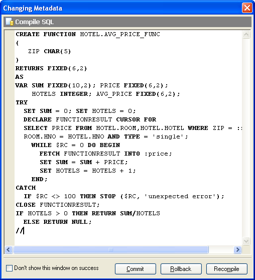 At this step you can specify the SQL definition for the new function. The step is optional: you can do it later using a non-modal editor.
