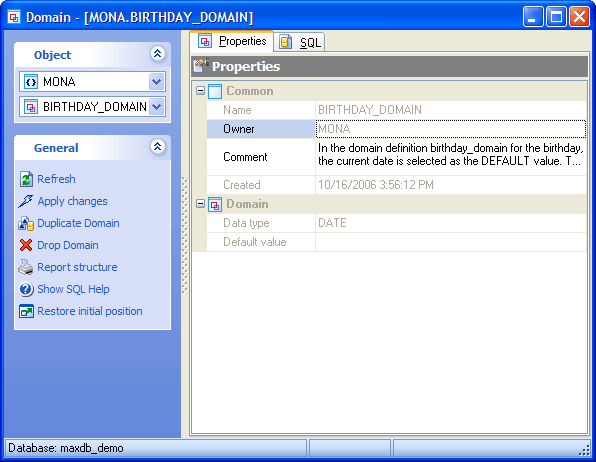 The basic principles of Object Editors in MaxDB Maestro are considered in the corresponding topic. Use the following links to find the description of editor tabs that are unique to the current object.