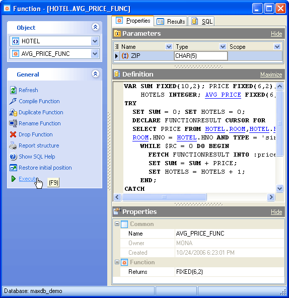 Function Editor allows you to execute the existing Function or edit its definition (Function name, parameter list, etc.). It is opened when you create a new Function or edit the existing one (see How to edit Function for details).