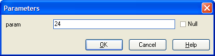The Input Parameters dialog is used to specify the query parameters as well as values of the input parameters of procedures or functions before the execution. Click the OK button to apply the values and execute the query or the Cancel button to abort the execution.