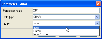 Use the Scope box to set whether parameter is Input, Output or Input-Output.