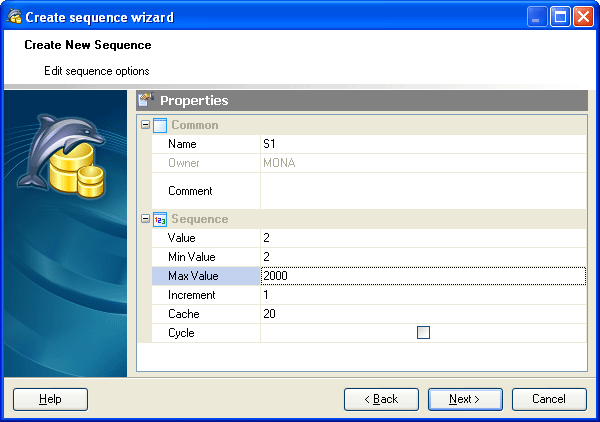 Sequences may be created with Create Sequence Wizard. Just specify the wizard options according to your needs.