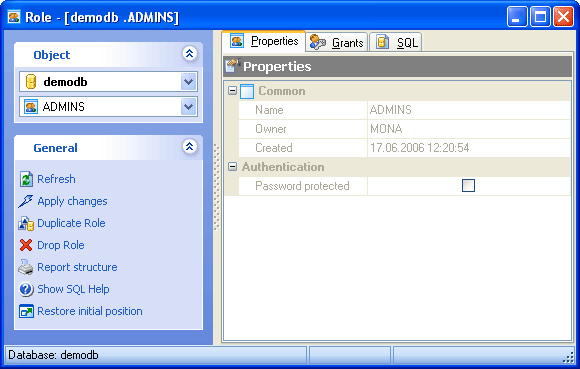 Role Editor allows you to edit role properties and permissions. It can be open automatically after the role is created and is available on editing (see How to edit role