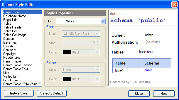 Using Report Style Editor you can specify style properties of a report including font size, color and name for different elements.