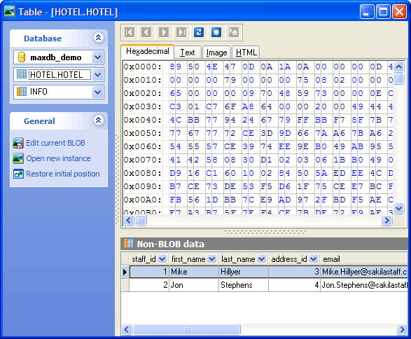 The Hexadecimal panel allows you to view data in hexadecimal mode.