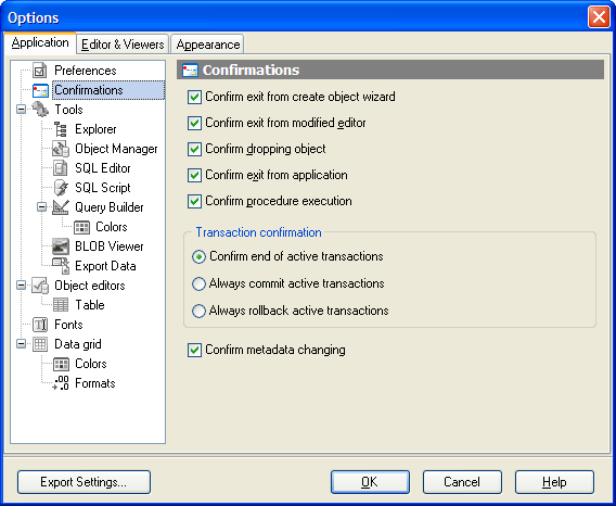 Select whether you will be prompted to commit or rollback active transaction or MaxDB Maestro will commit or rollback transactions without asking.
