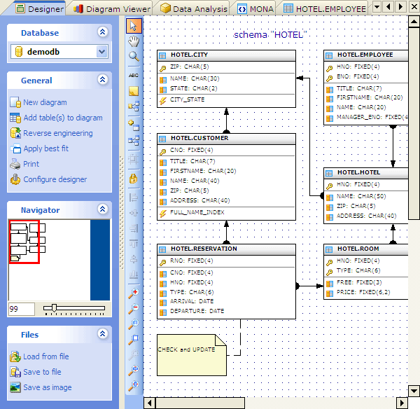 The Navigation Bar of Database Designer provides you a wide variety of opportunities to represent your tables in the most effective way.