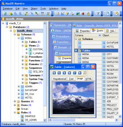 - easy MaxDB objects (e.g. tables, views, functions, synonyms, etc.) management;