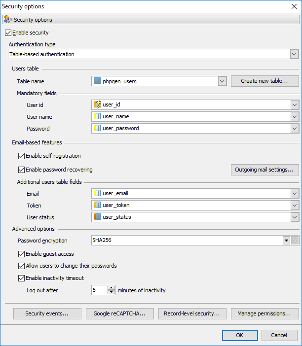 See also: Security events, Google reCAPTCHA, Record-level security, User permissions
