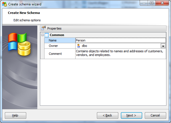 Create Schema Wizard guides you through the process of creating a new database schema.