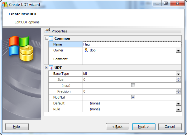 Specify the properties for the new UDT according to your needs. The detailed description is given below.