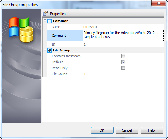 To open this dialog, select the File Group Properties item from the popup menu of the selected object in the explorer tree or double click the object.