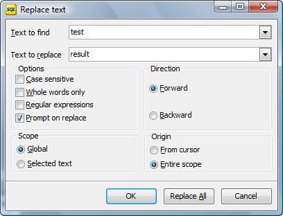 Replace Text dialog