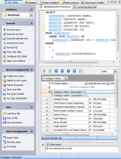 You can create and edit queries even without knowledge of SQL: preparing and executing queries, viewing the results of the execution become simple operations when performed with the help of Visual Query Builder. |