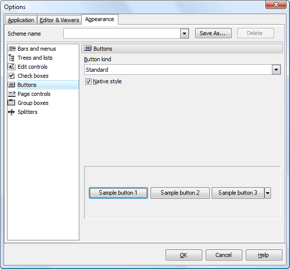 Use the Buttons item to customize Data Sync for MySQL buttons. The tab allows you to adjust the appearance of buttons and define sample buttons as well.