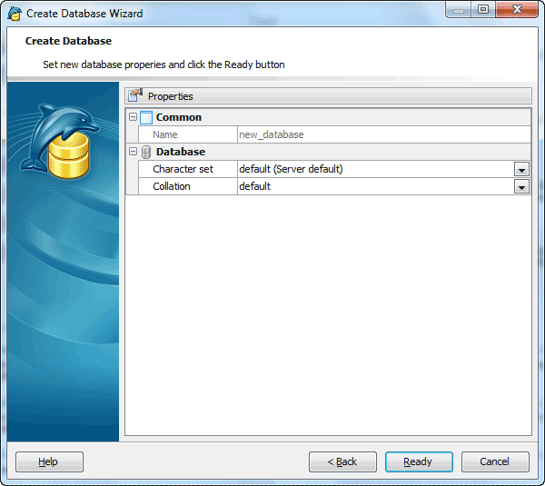 The next wizard step allows you to set common database options. All fields below are optional, i.e. it is not obligatory for you to fill them.