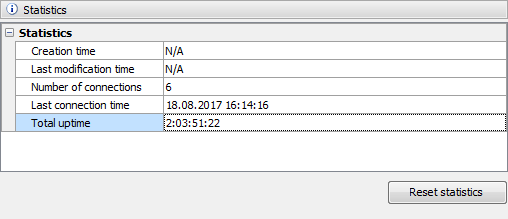 This tab allows you to view usage statistics for the current profile. Click the Reset Statistics button to clear all the displayed values.